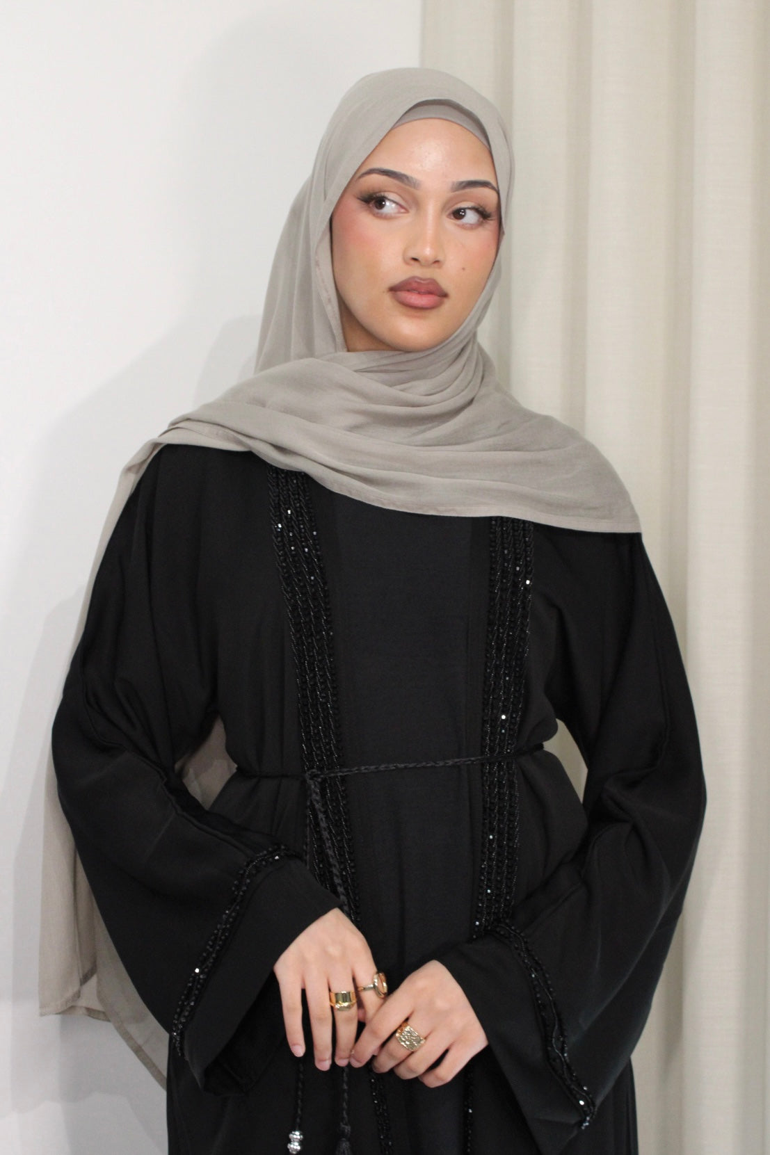 Noir Luxe Beaded Abaya Set